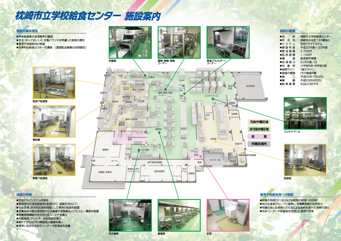 学校給食センターは,学校給食衛生管理基準を遵守し安全・安心でおいしく栄養バランスの取れた魅力ある学校給食をつくるとともに,学校での食育の推進,地産地消の拡大を図る献立の工夫や調理技術の向上に努めています。